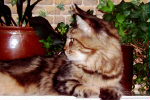 After our first dog - Cert died, who got injury in September 2003, I was thinking 14 days about whether I should take a Russian Blue Cat or Siberian or Norwegian Forest Cat or perhaps Main Raccoon Cat, Ragdoll Cat, Bengaline Cat, Nebelung or Korat Cat. Then I realized that look for a Nebelung or Korat Cat in our country doesn't make sense. From the others remained only male cats in the litters, so finally a nice black marble-like Maine Cat from CHS Gentle Lions, Karlovy Vary. Her name is Hatifa, but we call her quite naturally "KOCKO" ( = "CAT"), especially in connection with unwanted activities. Otherwise she can also be called (originally) "Tifa" and so on.